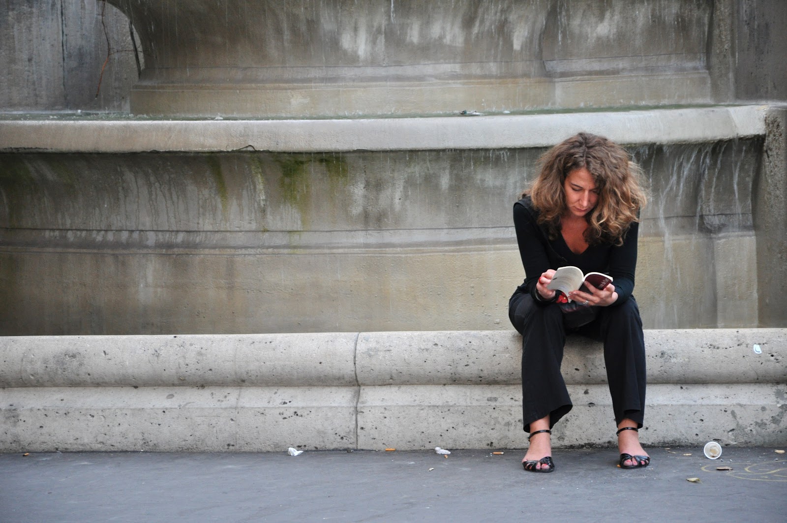 it's just a woman sitting on the fountain and reading something, somewhere in Paris <3